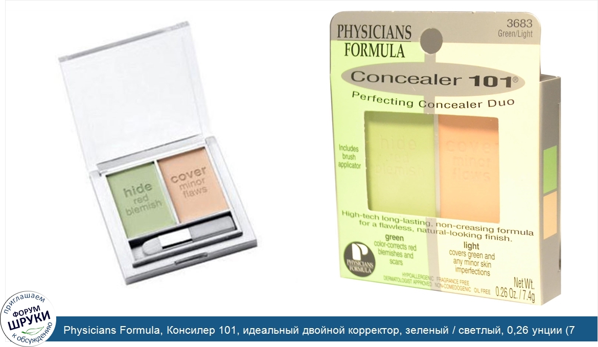 ru Physicians Formula, Консилер 101, идеальный двойной корректор, зеленый / светлый, 0,26 унции (7,4 г)