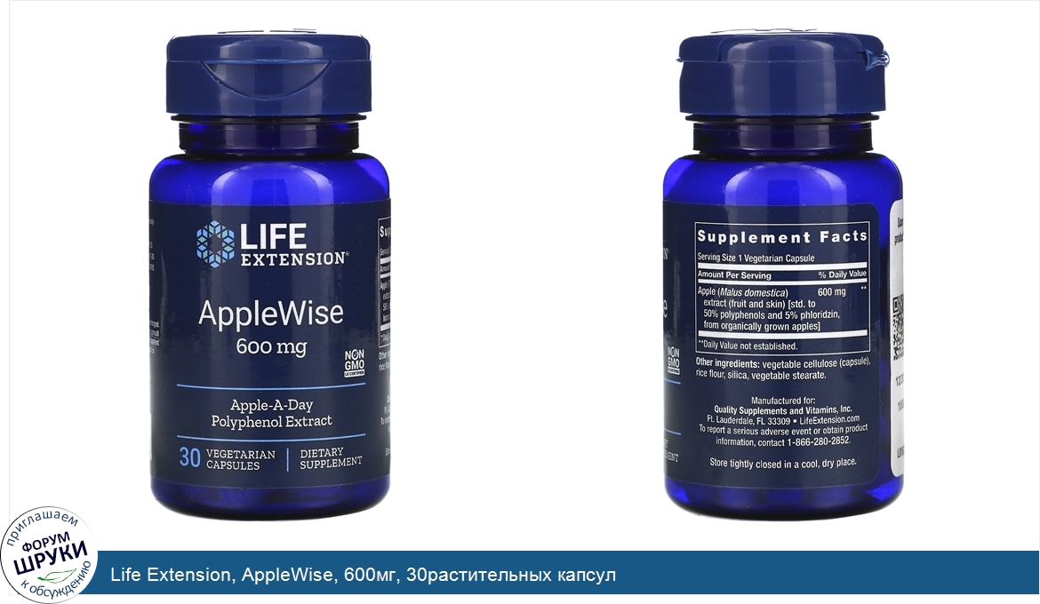 Life Extension, AppleWise, 600мг, 30растительных капсул