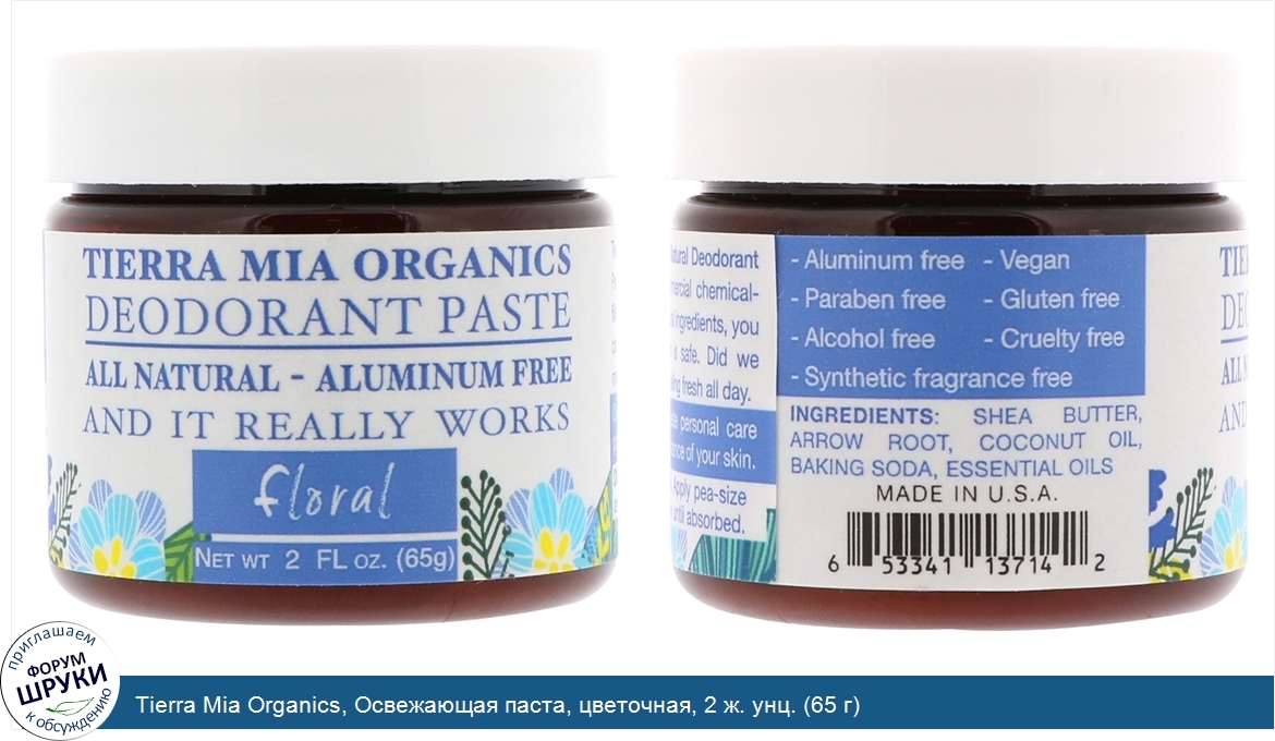 [DESCRIPT]All Natural. And It Really Works. Aluminum Free. Paraben Free. Alcohol Free. Synthetic Fragrance Free. Vegan. Gluten Free. Cruelty Free. Tierra Mia Organics Aluminum Free - Natural Deodorant Paste is the perfect alternative to commercial chemical-filled deodorants. With fewer than 6 natural ingredients, you can feel confident that this deodorant is safe. Did we mention it really works? It keeps you smelling fresh all day. Our mission is healthy living and to create personal care products that do not disturb the natural balance of your skin.[/DESCRIPT]... (описание дополняется)