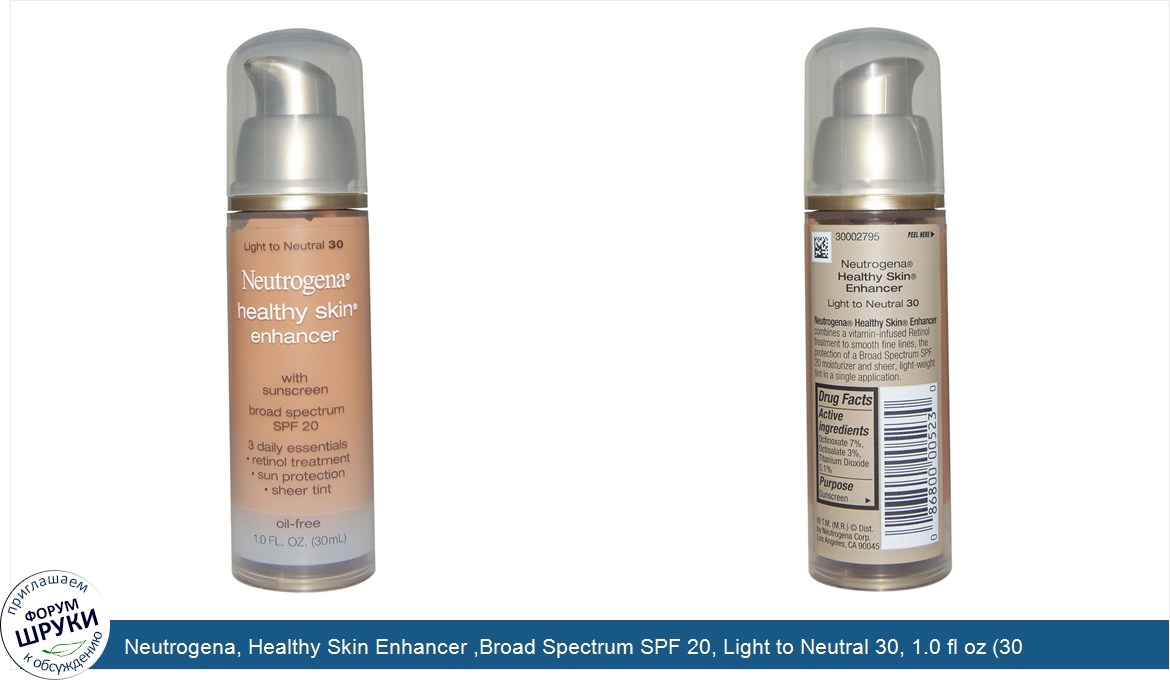 Neutrogena, Healthy Skin Enhancer ,Broad Spectrum SPF 20, Light to Neutral 30, 1.0 fl oz (30 ml)