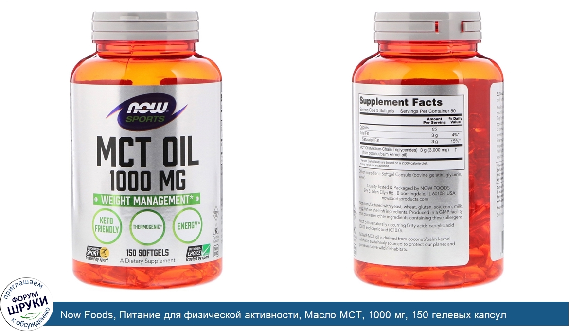 Друзья, если у вас есть отзыв/дополнение/комментарий/вопрос относительно Now Foods, Питание для физической активности, Масло МСТ, 1000 мг, 150 гелевых капсул - напишите его ответом в эту тему (это будет полезно всему сообществу в целом и вам в отдельности).