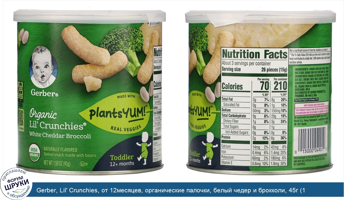 Друзья, если у вас есть отзыв/дополнение/комментарий/вопрос относительно Gerber, Lil' Crunchies, от 12месяцев, органические палочки, белый чедер и брокколи, 45г (1,59унции) - напишите его ответом в эту тему (это будет полезно всему сообществу в целом и вам в отдельности).