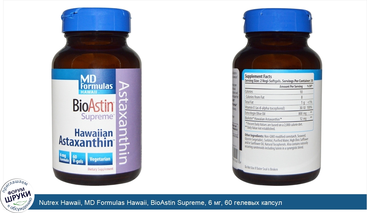 Nutrex Hawaii, MD Formulas Hawaii, BioAstin Supreme, 6 мг, 60 гелевых капсул