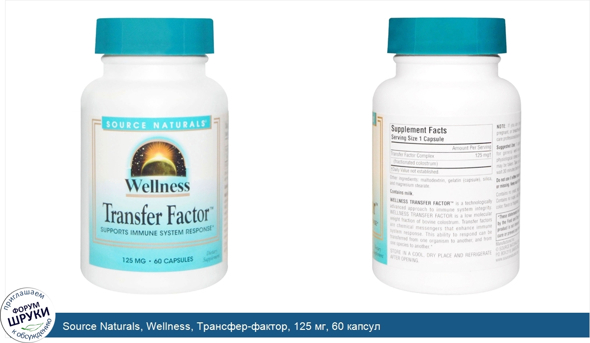 ru Source Naturals, Wellness, Трансфер-фактор, 125 мг, 60 капсул