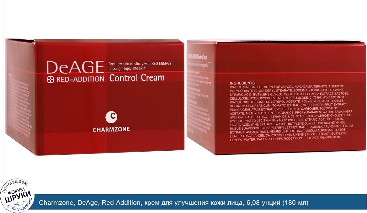 Друзья, если у вас есть отзыв/дополнение/комментарий/вопрос относительно Charmzone, DeAge, Red-Addition, крем для улучшения кожи лица, 6,08 унций (180 мл) - напишите его ответом в эту тему (это будет полезно всему сообществу в целом и вам в отдельности).