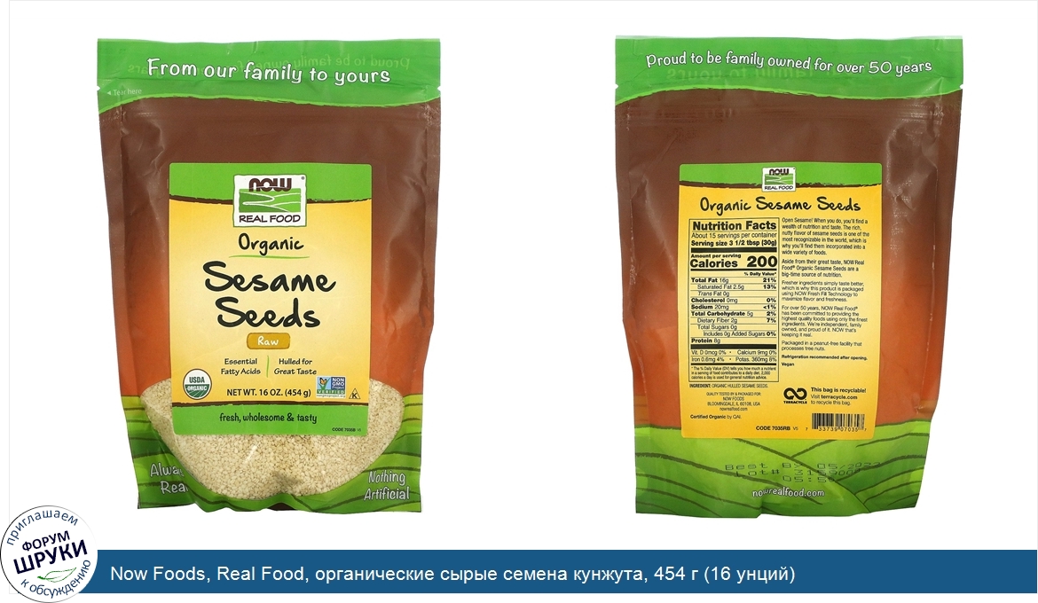 Now Foods, Real Food, органические сырые семена кунжута, 454 г (16 унций)