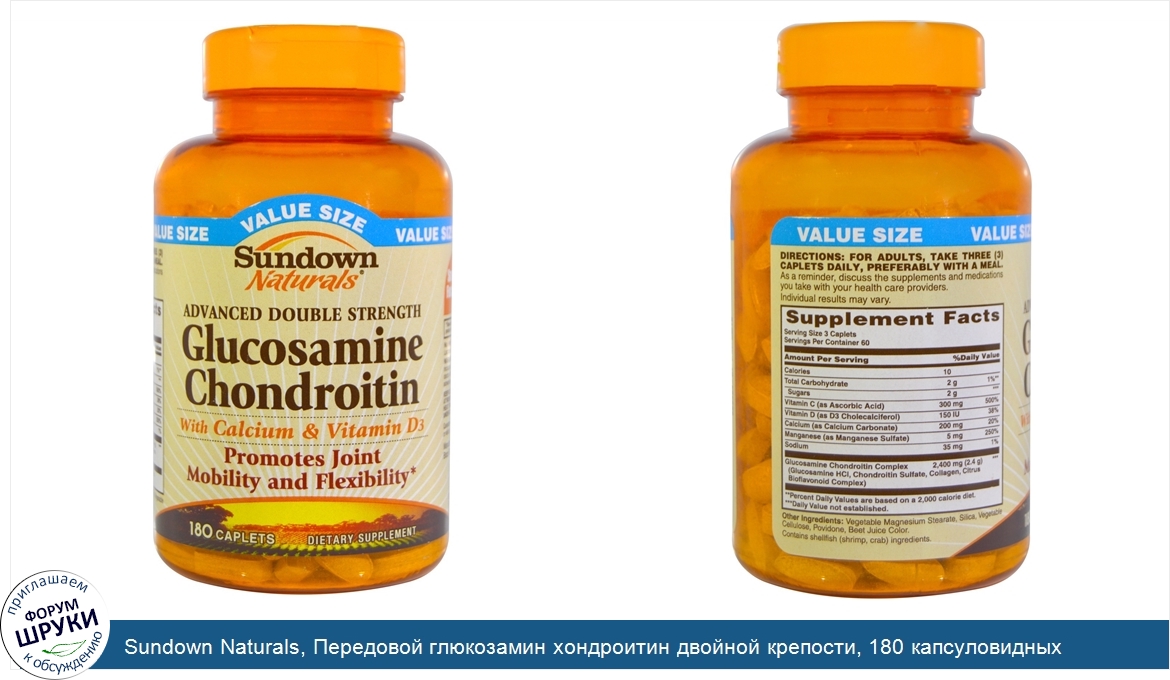 Друзья, если у вас есть отзыв/дополнение/комментарий/вопрос относительно Sundown Naturals, Передовой глюкозамин хондроитин двойной крепости, 180 капсуловидных таблеток - напишите его ответом в эту тему (это будет полезно всему сообществу в целом и вам в отдельности).