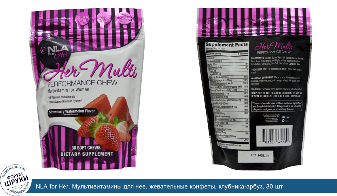 Друзья, если у вас есть отзыв/дополнение/комментарий/вопрос относительно NLA for Her, Мультивитамины для нее, жевательные конфеты, клубника-арбуз, 30 шт - напишите его ответом в эту тему (это будет полезно всему сообществу в целом и вам в отдельности).