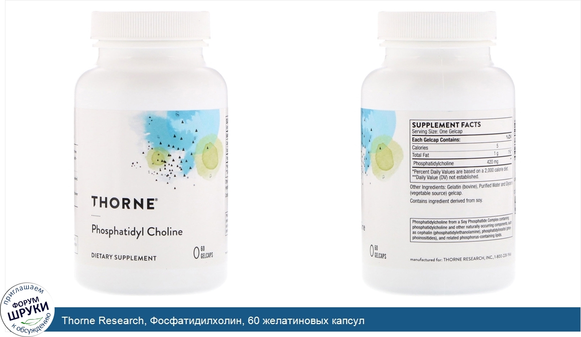 Категории: Thorne Research, Пищевые добавки, Фосфолипиды, Фосфатидилхолин, Торн Ресерч, 18687