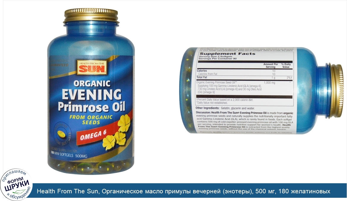 Друзья, если у вас есть отзыв/дополнение/комментарий/вопрос относительно Health From The Sun, Органическое масло примулы вечерней (энотеры), 500 мг, 180 желатиновых мини-капсул - напишите его ответом в эту тему (это будет полезно всему сообществу в целом и вам в отдельности).