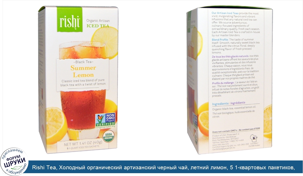 Друзья, если у вас есть отзыв/дополнение/комментарий/вопрос относительно Rishi Tea, Холодный органический артизанский черный чай, летний лимон, 5 1-квартовых пакетиков, 40 г (1,41 унции) - напишите его ответом в эту тему (это будет полезно всему сообществу в целом и вам в отдельности).