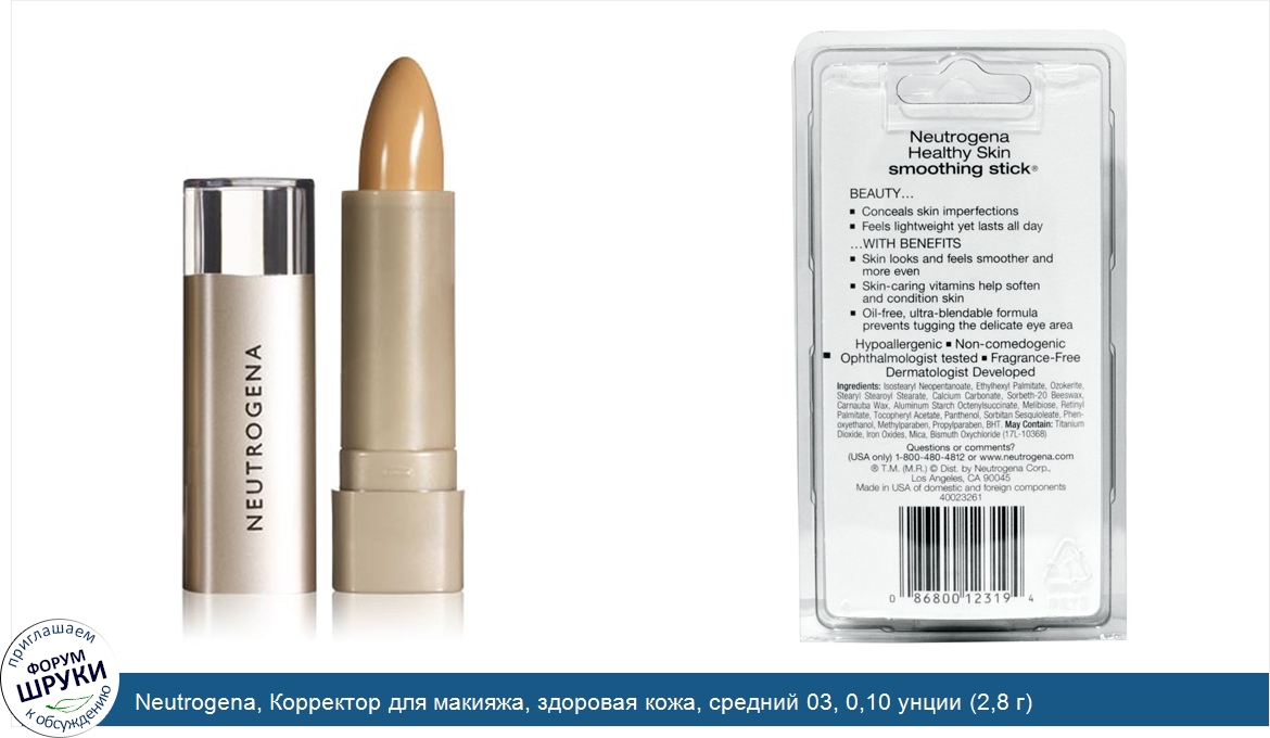 Друзья, если у вас есть отзыв/дополнение/комментарий/вопрос относительно Neutrogena, Корректор для макияжа, здоровая кожа, средний 03, 0,10 унции (2,8 г) - напишите его ответом в эту тему (это будет полезно всему сообществу в целом и вам в отдельности).