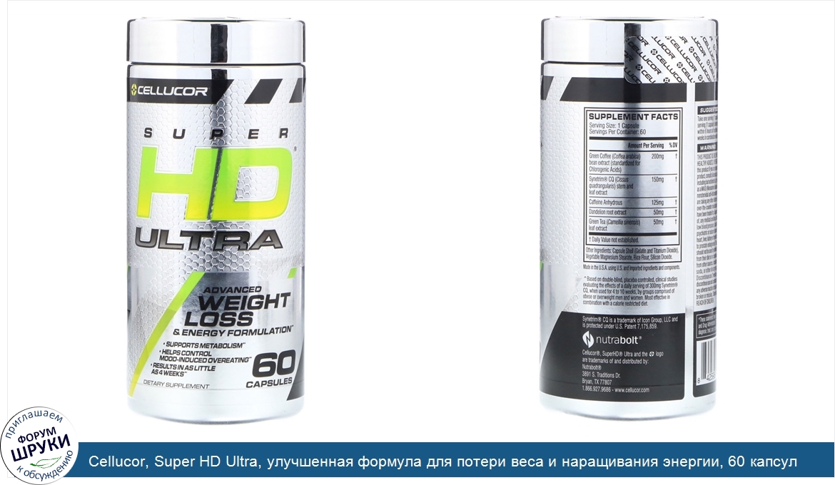 Друзья, если у вас есть отзыв/дополнение/комментарий/вопрос относительно Cellucor, Super HD Ultra, улучшенная формула для потери веса и наращивания энергии, 60 капсул - напишите его ответом в эту тему (это будет полезно всему сообществу в целом и вам в отдельности).