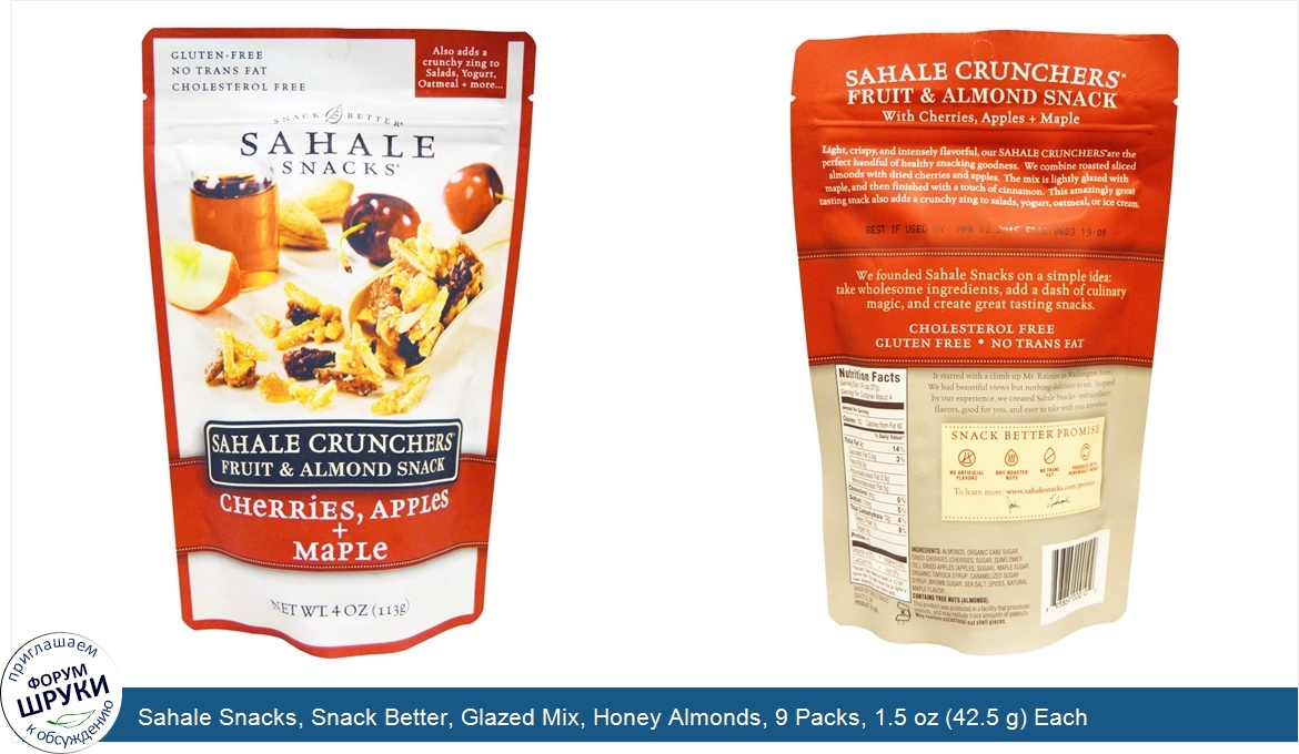 Друзья, если у вас есть отзыв/дополнение/комментарий/вопрос относительно Sahale Snacks, Snack Better, Glazed Mix, Honey Almonds, 9 Packs, 1.5 oz (42.5 g) Each - напишите его ответом в эту тему (это будет полезно всему сообществу в целом и вам в отдельности).