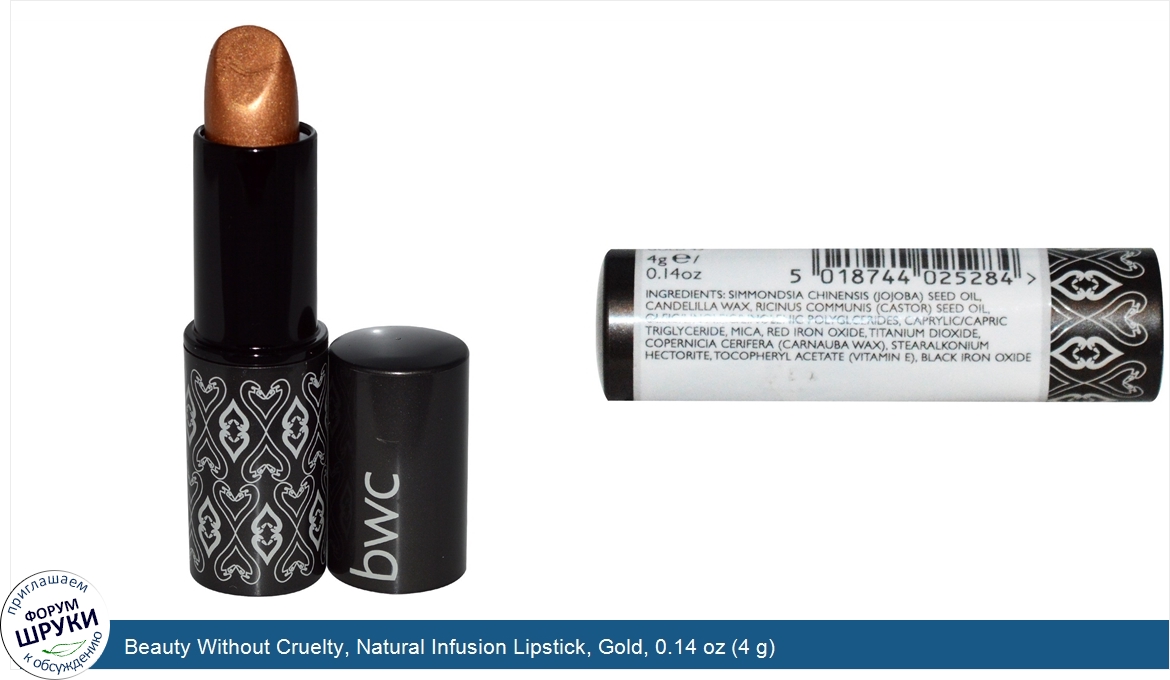 ru Beauty Without Cruelty, Natural Infusion Lipstick, Gold, 0.14 oz (4 g)