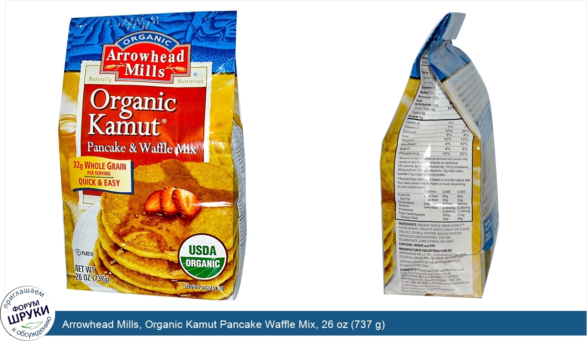 Arrowhead Mills, Organic Kamut Pancake Waffle Mix, 26 oz (737 g)
