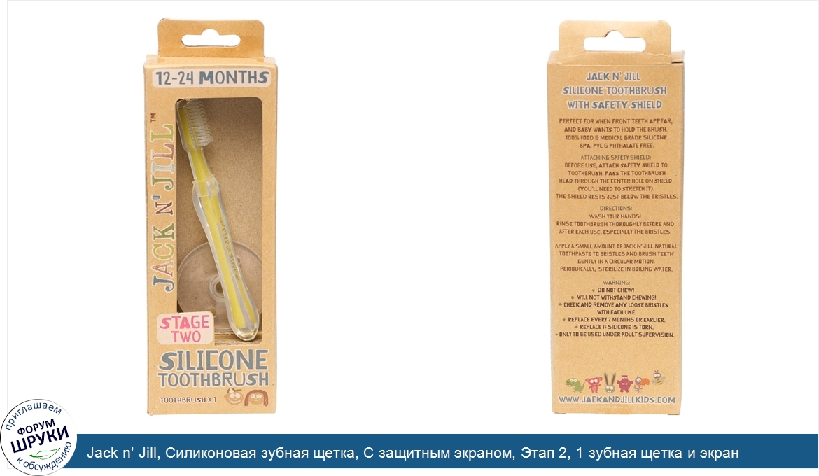 Jack n' Jill, Силиконовая зубная щетка, С защитным экраном, Этап 2, 1 зубная щетка и экран