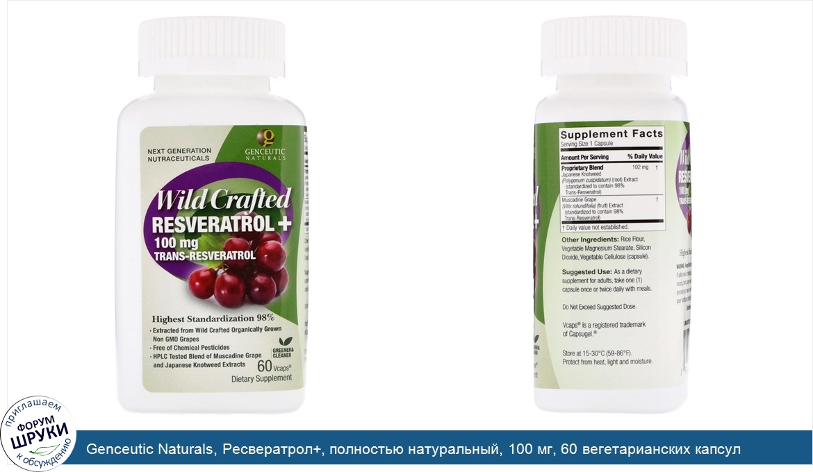 Друзья, если у вас есть отзыв/дополнение/комментарий/вопрос относительно Genceutic Naturals, Ресвератрол+, полностью натуральный, 100 мг, 60 вегетарианских капсул - напишите его ответом в эту тему (это будет полезно всему сообществу в целом и вам в отдельности).
