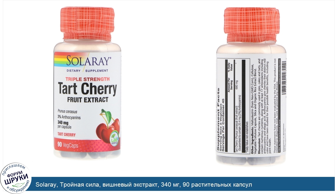 Solaray, Тройная сила, вишневый экстракт, 340 мг, 90 растительных капсул