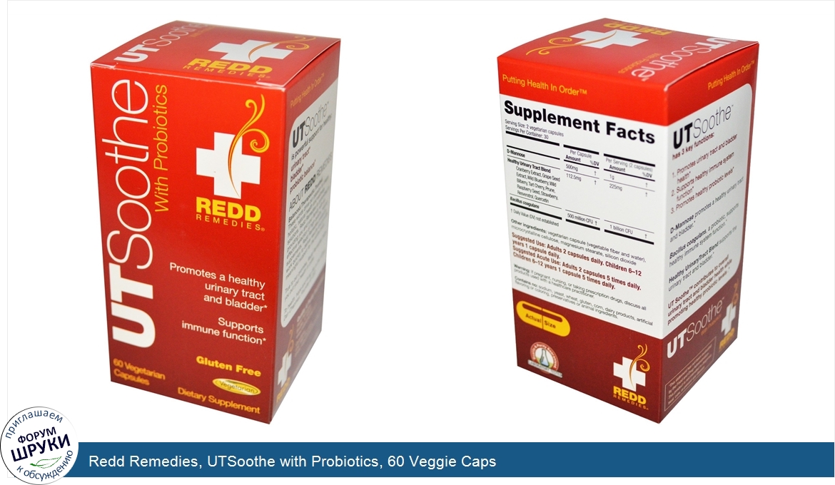 Друзья, если у вас есть отзыв/дополнение/комментарий/вопрос относительно Redd Remedies, UTSoothe with Probiotics, 60 Veggie Caps - напишите его ответом в эту тему (это будет полезно всему сообществу в целом и вам в отдельности).