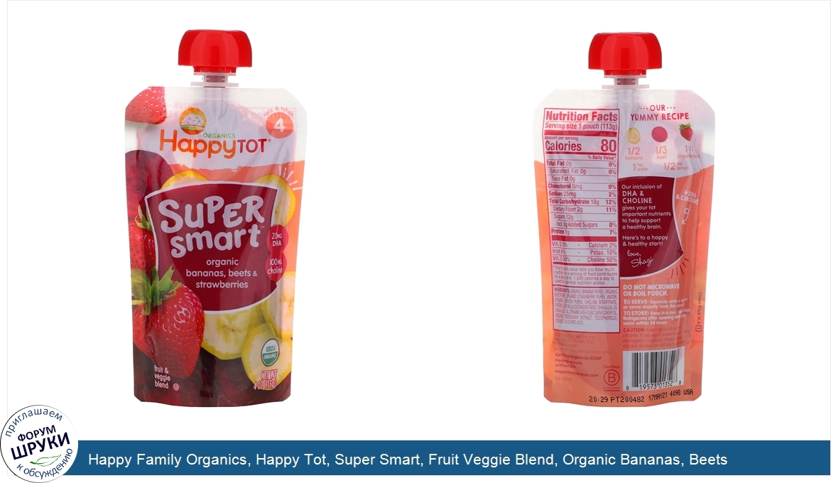 Друзья, если у вас есть отзыв/дополнение/комментарий/вопрос относительно Happy Family Organics, Happy Tot, Super Smart, Fruit Veggie Blend, Organic Bananas, Beets Strawberries, Stage 4, 4 oz (113 g) - напишите его ответом в эту тему (это будет полезно всему сообществу в целом и вам в отдельности).