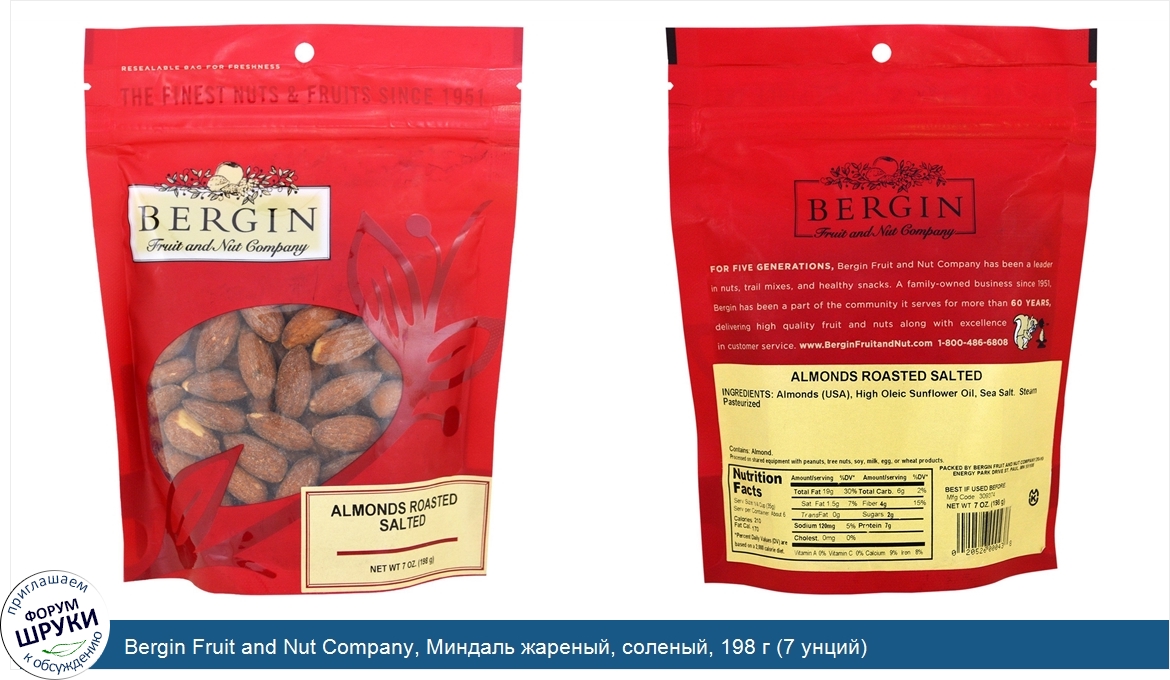 Друзья, если у вас есть отзыв/дополнение/комментарий/вопрос относительно Bergin Fruit and Nut Company, Миндаль жареный, соленый, 198 г (7 унций) - напишите его ответом в эту тему (это будет полезно всему сообществу в целом и вам в отдельности).