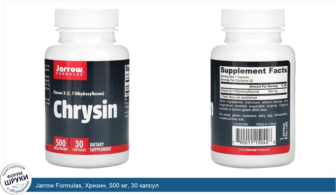 Jarrow Formulas, Хризин, 500 мг, 30 капсул