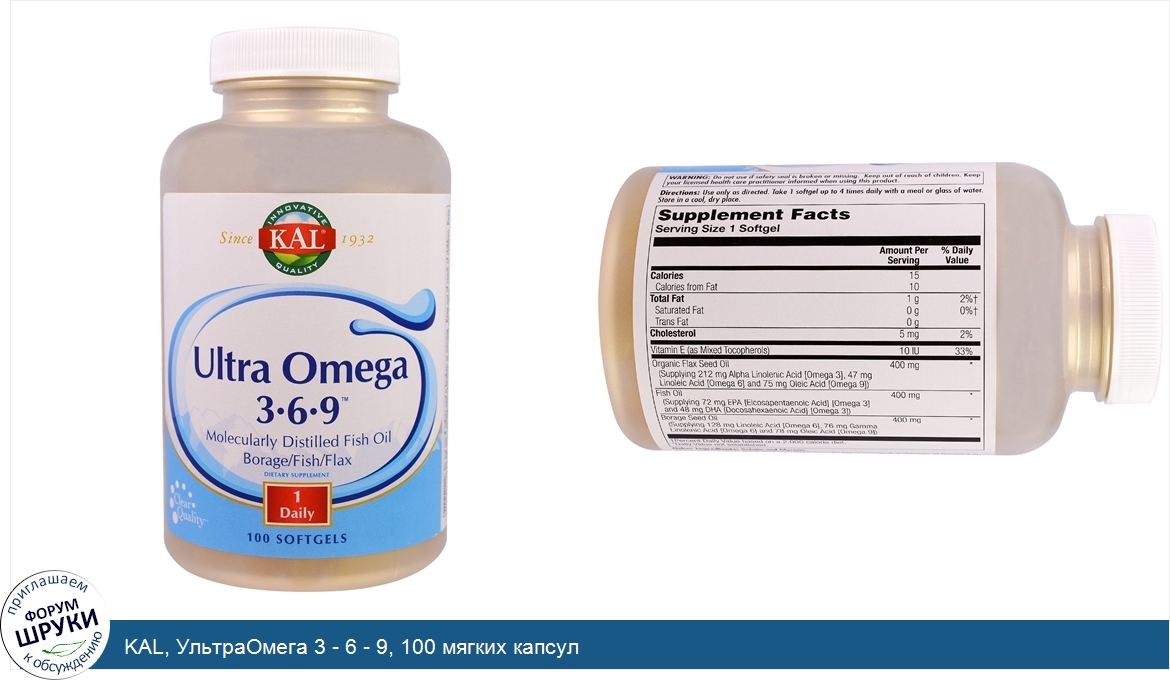 Друзья, если у вас есть отзыв/дополнение/комментарий/вопрос относительно KAL, УльтраОмега 3 - 6 - 9, 100 мягких капсул - напишите его ответом в эту тему (это будет полезно всему сообществу в целом и вам в отдельности).
