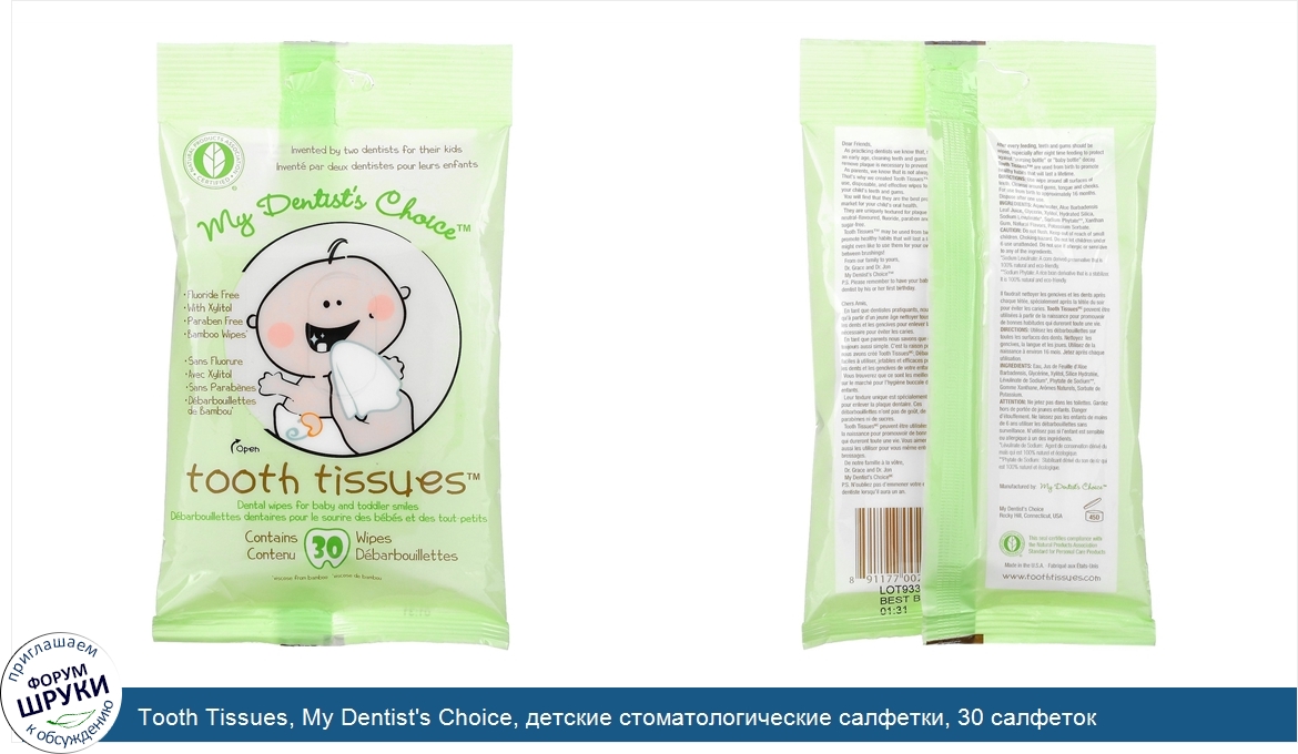 Друзья, если у вас есть отзыв/дополнение/комментарий/вопрос относительно Tooth Tissues, My Dentist's Choice, детские стоматологические салфетки, 30 салфеток - напишите его ответом в эту тему (это будет полезно всему сообществу в целом и вам в отдельности).