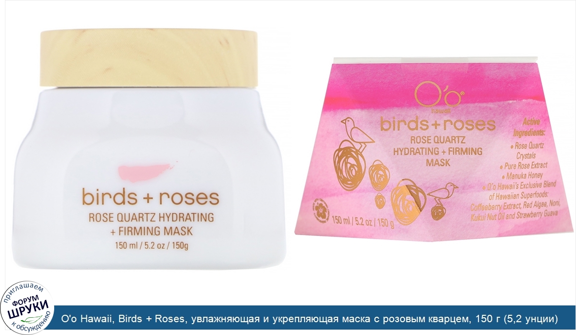 Друзья, если у вас есть отзыв/дополнение/комментарий/вопрос относительно O'o Hawaii, Birds + Roses, увлажняющая и укрепляющая маска с розовым кварцем, 150 г (5,2 унции) - напишите его ответом в эту тему (это будет полезно всему сообществу в целом и вам в отдельности).