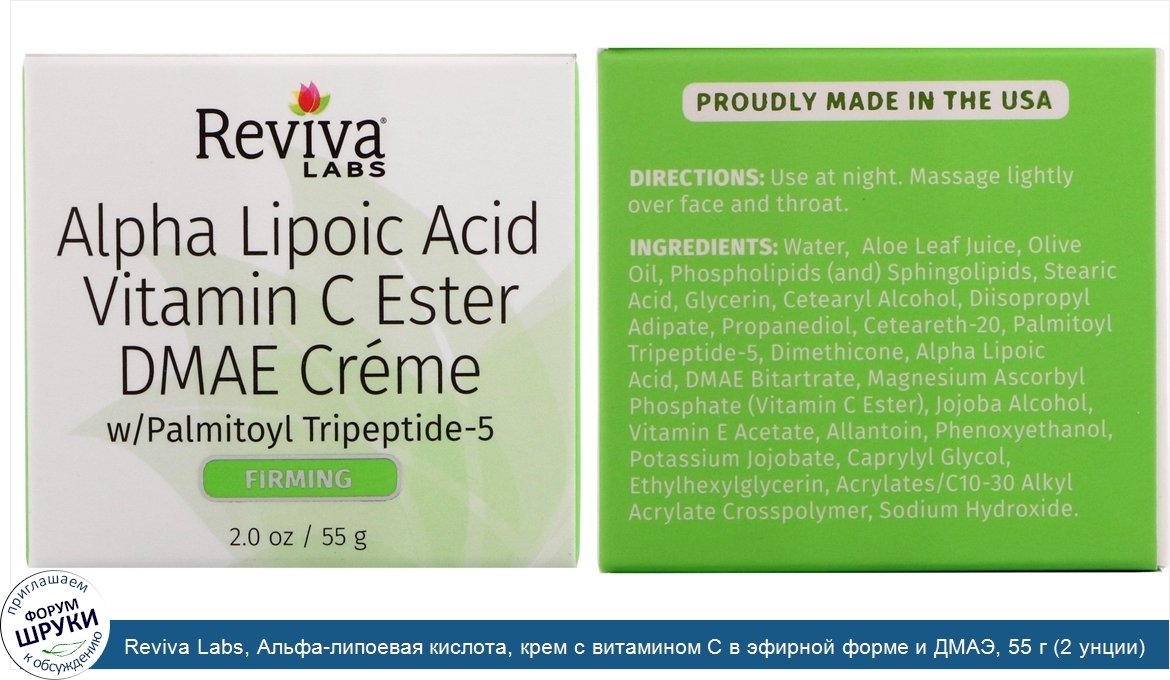 Друзья, если у вас есть отзыв/дополнение/комментарий/вопрос относительно Reviva Labs, Альфа-липоевая кислота, крем с витамином С в эфирной форме и ДМАЭ, 55 г (2 унции) - напишите его ответом в эту тему (это будет полезно всему сообществу в целом и вам в отдельности).