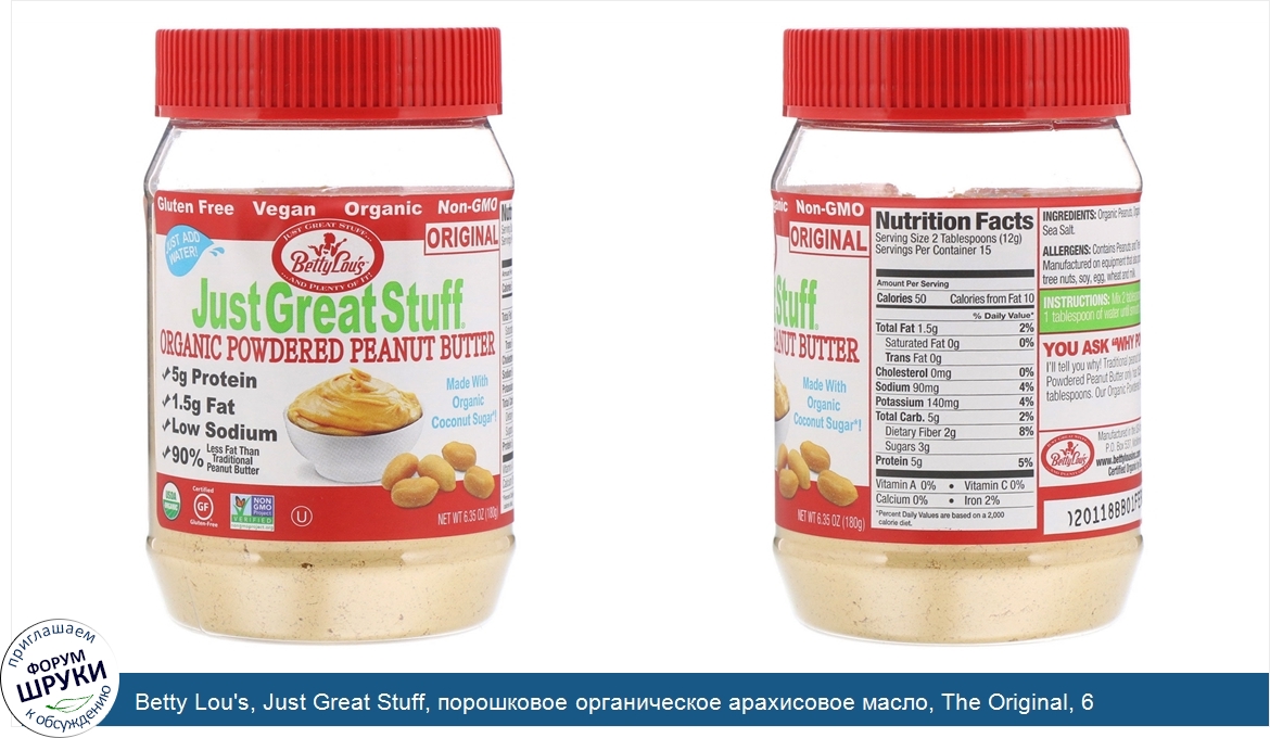 Друзья, если у вас есть отзыв/дополнение/комментарий/вопрос относительно Betty Lou's, Just Great Stuff, порошковое органическое арахисовое масло, The Original, 6,35 унций (180 г) - напишите его ответом в эту тему (это будет полезно всему сообществу в целом и вам в отдельности).