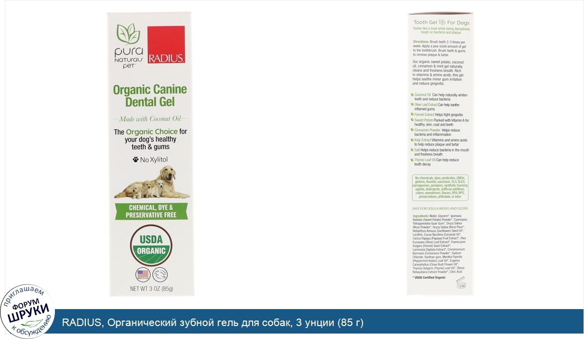 Друзья, если у вас есть отзыв/дополнение/комментарий/вопрос относительно RADIUS, Органический зубной гель для собак, 3 унции (85 г) - напишите его ответом в эту тему (это будет полезно всему сообществу в целом и вам в отдельности).