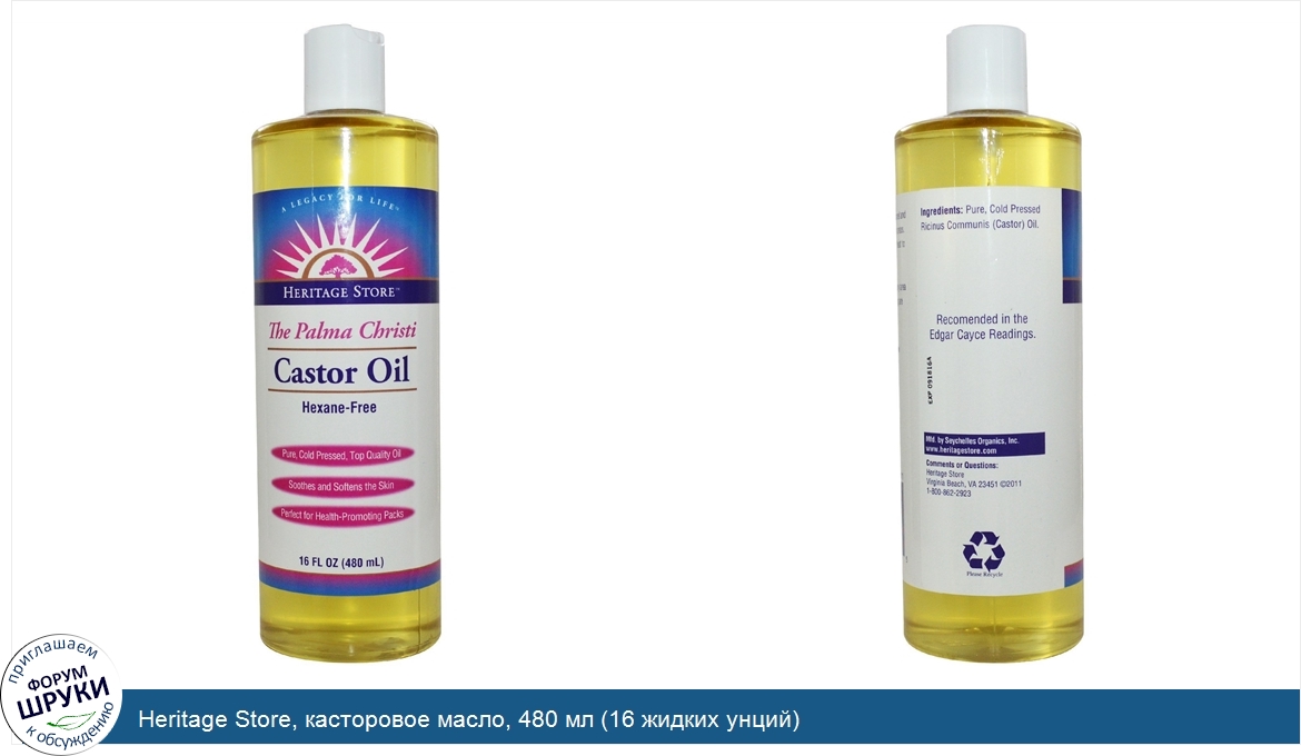 Друзья, если у вас есть отзыв/дополнение/комментарий/вопрос относительно Heritage Store, касторовое масло, 480 мл (16 жидких унций) - напишите его ответом в эту тему (это будет полезно всему сообществу в целом и вам в отдельности).