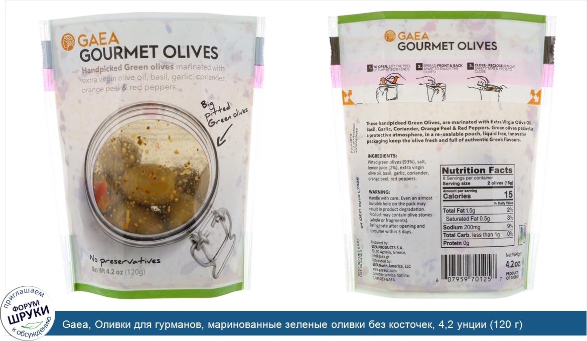Друзья, если у вас есть отзыв/дополнение/комментарий/вопрос относительно Gaea, Оливки для гурманов, маринованные зеленые оливки без косточек, 4,2 унции (120 г) - напишите его ответом в эту тему (это будет полезно всему сообществу в целом и вам в отдельности).