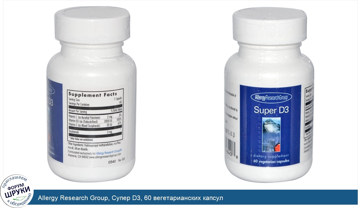 ru Allergy Research Group, Супер D3, 60 вегетарианских капсул