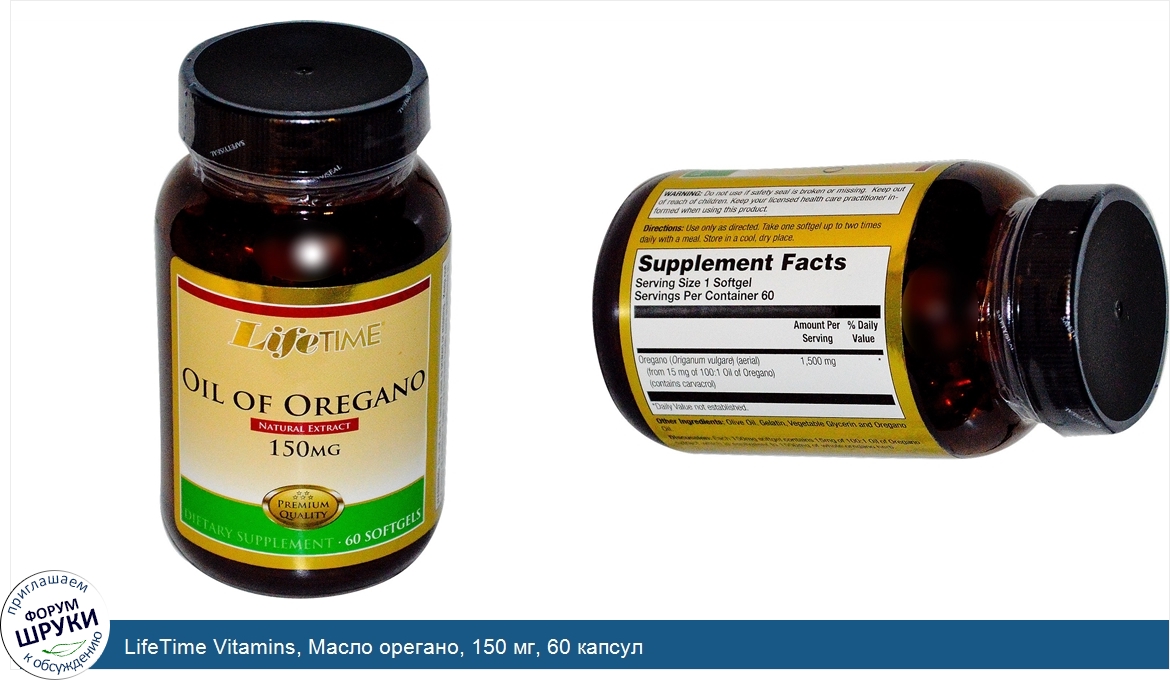 LifeTime Vitamins, Масло орегано, 150 мг, 60 капсул