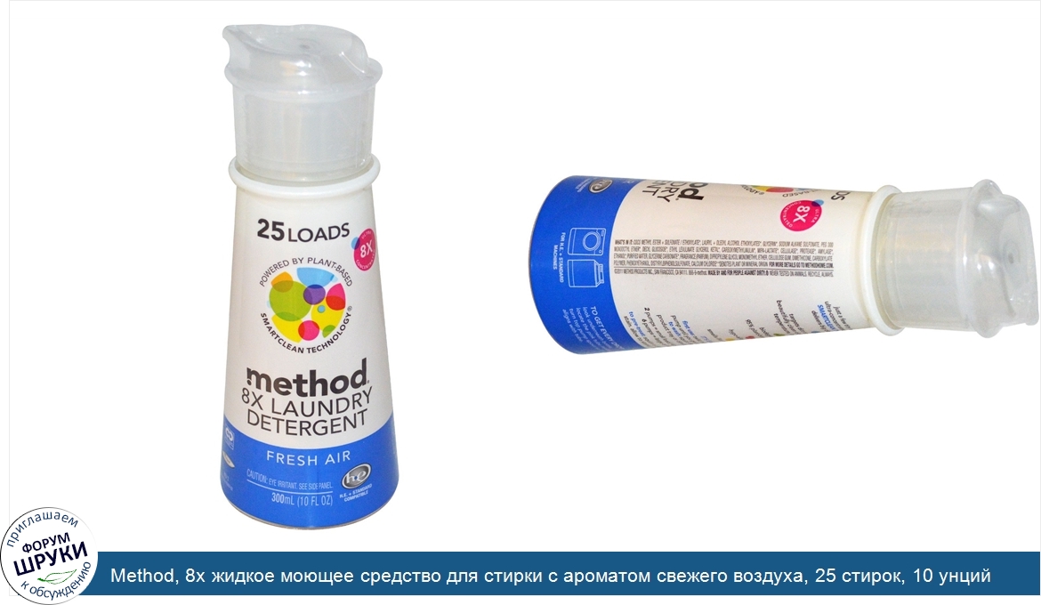 Method, 8х жидкое моющее средство для стирки с ароматом свежего воздуха, 25 стирок, 10 унций (300 мл)