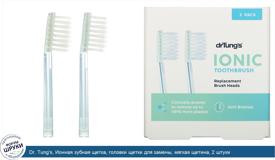 Dr. Tung's, Ионная зубная щетка, головки щетки для замены, мягкая щетина, 2 штуки