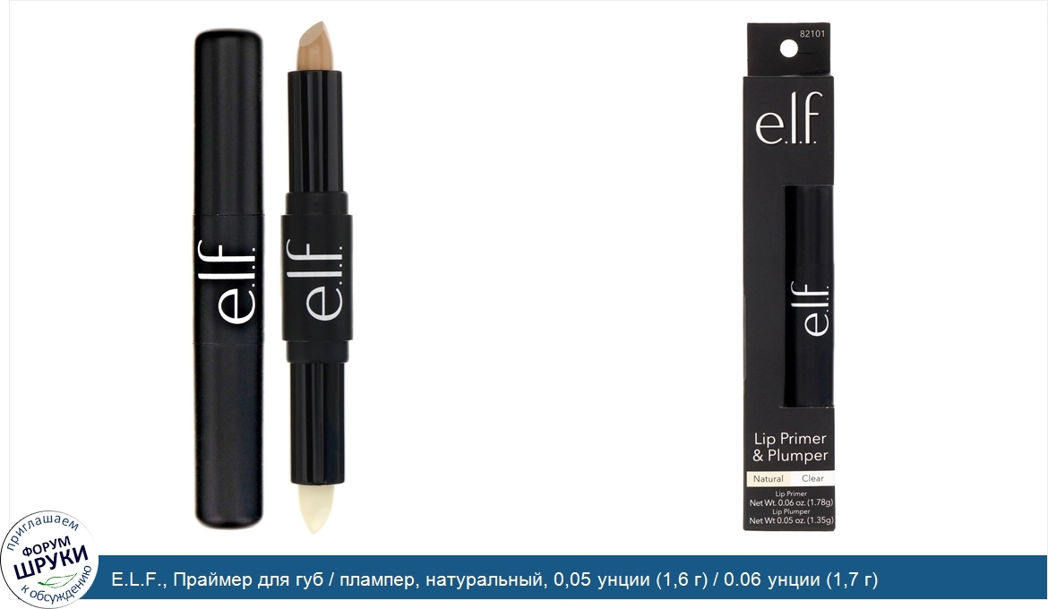ru E.L.F., Праймер для губ / плампер, натуральный, 0,05 унции (1,6 г) / 0.06 унции (1,7 г)