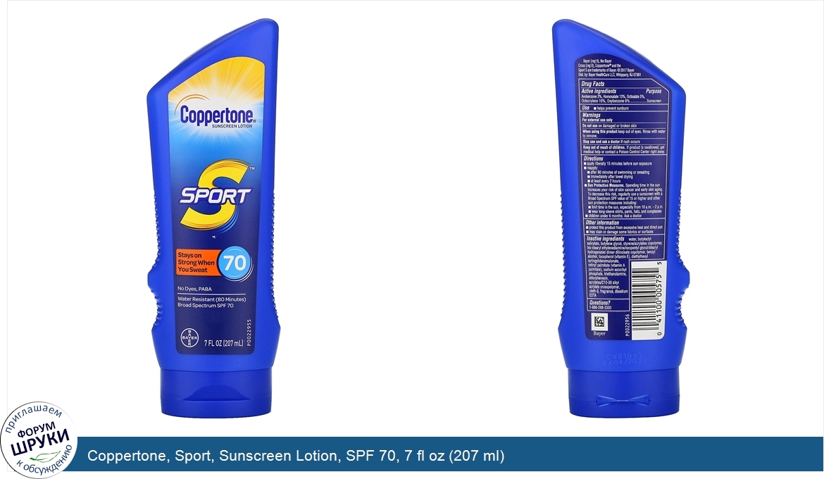 Друзья, если у вас есть отзыв/дополнение/комментарий/вопрос относительно Coppertone, Sport, Sunscreen Lotion, SPF 70, 7 fl oz (207 ml) - напишите его ответом в эту тему (это будет полезно всему сообществу в целом и вам в отдельности).
