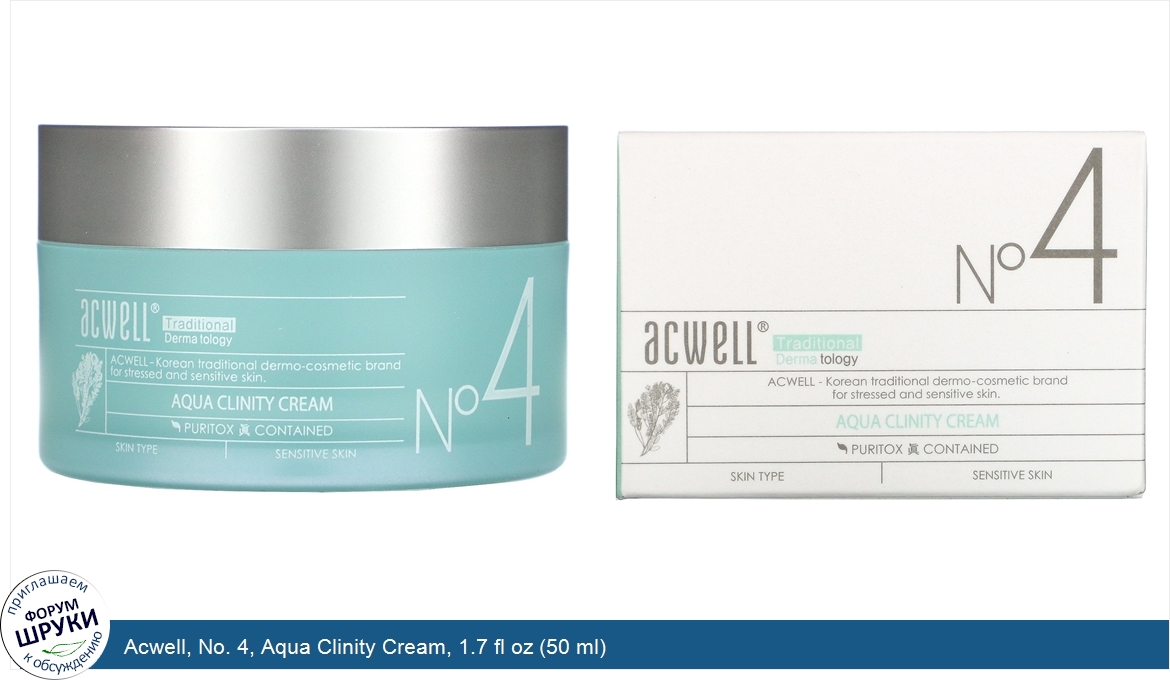 Acwell, No. 4, Aqua Clinity Cream, 1.7 fl oz (50 ml)