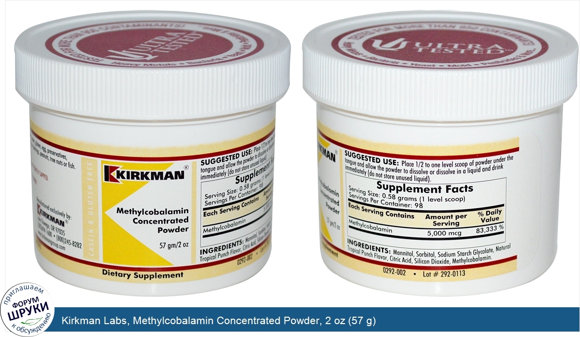 ru Kirkman Labs, Methylcobalamin Concentrated Powder, 2 oz (57 g)