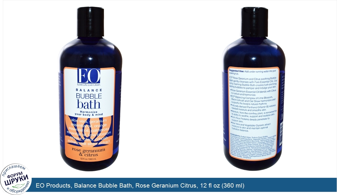 Друзья, если у вас есть отзыв/дополнение/комментарий/вопрос относительно EO Products, Balance Bubble Bath, Rose Geranium Citrus, 12 fl oz (360 ml) - напишите его ответом в эту тему (это будет полезно всему сообществу в целом и вам в отдельности).