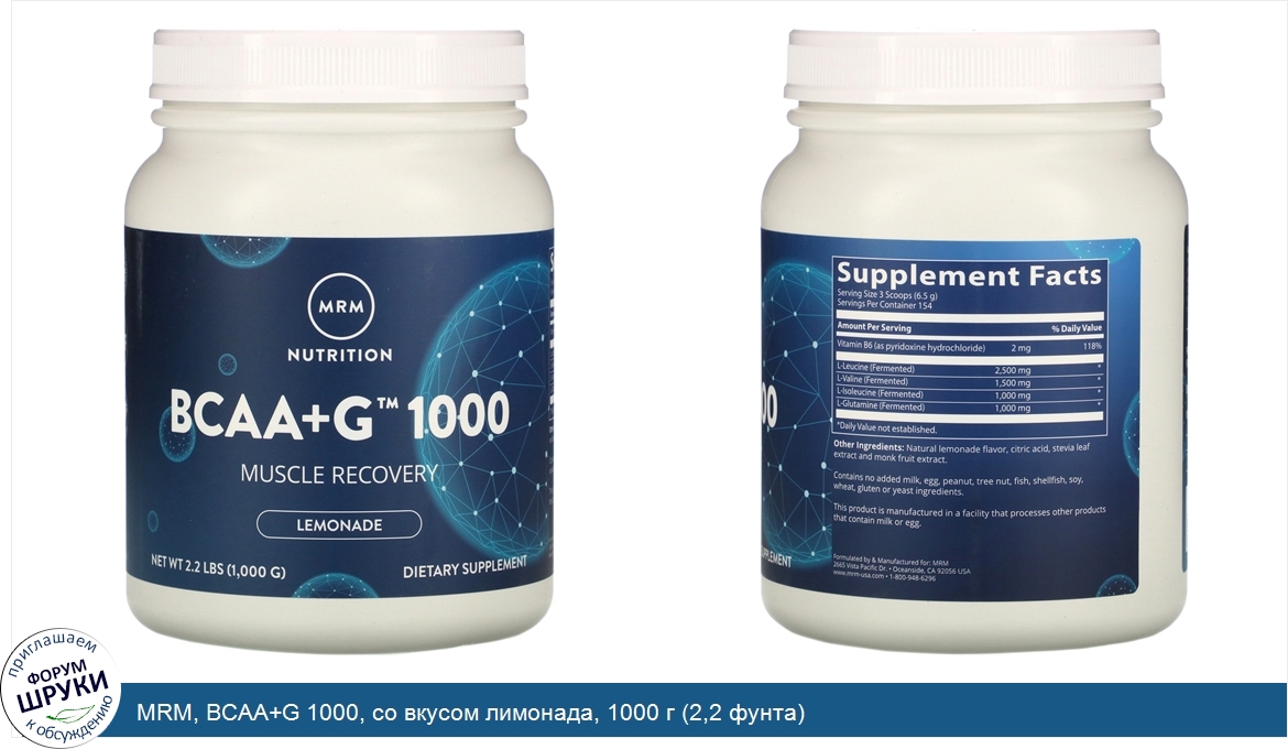 ru MRM, BCAA+G 1000, со вкусом лимонада, 1000 г (2,2 фунта)