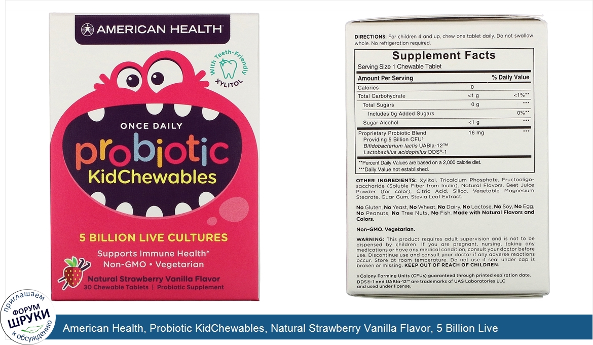 Друзья, если у вас есть отзыв/дополнение/комментарий/вопрос относительно American Health, Probiotic KidChewables, Natural Strawberry Vanilla Flavor, 5 Billion Live Cultures , 30 Chewable Tablets - напишите его ответом в эту тему (это будет полезно всему сообществу в целом и вам в отдельности).