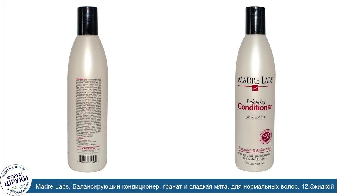 Madre Labs, Балансирующий кондиционер, гранат и сладкая мята, для нормальных волос, 12,5жидкой унции (370мл)