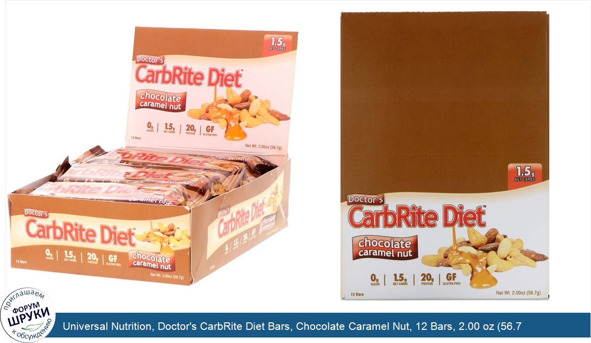 Universal Nutrition, Doctor's CarbRite Diet Bars, Chocolate Caramel Nut, 12 Bars, 2.00 oz (56.7 g) Each