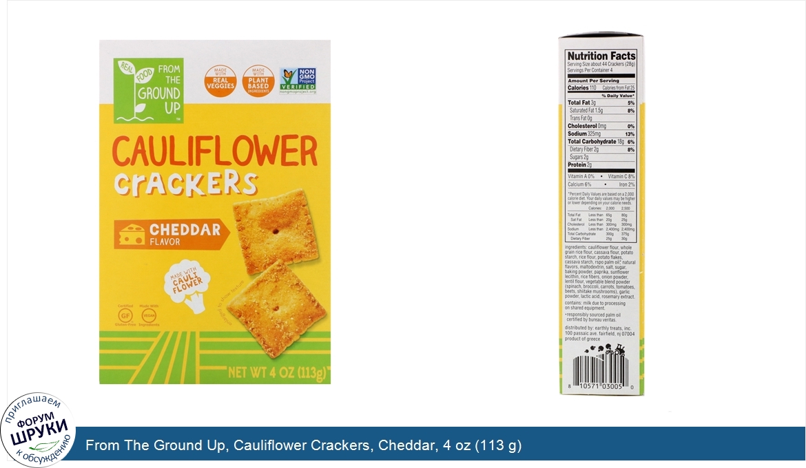 Друзья, если у вас есть отзыв/дополнение/комментарий/вопрос относительно From The Ground Up, Cauliflower Crackers, Cheddar, 4 oz (113 g) - напишите его ответом в эту тему (это будет полезно всему сообществу в целом и вам в отдельности).