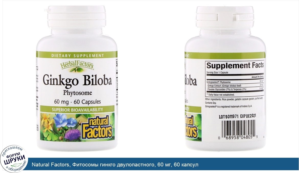 [DESCRIPT]Dietary Supplement. Herbal Factors. Superior Bioavailability. Purity Potency Guaranteed. Ginkgo Biloba Phytosome is the result of a unique, patented process that binds Ginkgo Biloba and key actives to phosphatidylcholine (from non-GMO) soy lecithin) resulting in superior bioavailability. Isura:. Non-GMO: Documentation ✔. Mass Spec: Lab Tested ✔.[/DESCRIPT]... (описание дополняется)